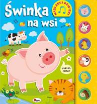 OpisKsiążeczka sensoryczna - zawiera elementy dźwiękowe. Wspiera wszechstronny rozwój dziecka - pobudza ZMYSŁY WZROKU, DOTYKU I SŁUCHU. Prezentuje 6 DŹWIĘKÓW. Zawiera prostą krótką HISTORYJKĘ i mnóstwo WYRAZÓW DŹWIĘKONAŚLADOWCZYCH. Książka zabiera małych czytelników w niezapomnianą PODRÓŻ NA WIEŚ. Dzieci znajdą w niej krótkie HISTORYJKI o tym, jak świnka spotyka wiejskie zwierzątka, oraz mnóstwo WYRAZÓW DŹWIĘKONAŚLADOWCZYCH. Wyróżnikiem publikacji jest 6 różnorodnych DŹWIĘKÓW wydawanych po naciśnięciu silikonowych PRZYCISKÓW DŹWIĘKOWYCH. Dzięki niej maluch dowie się, jakie dźwięki wydają świnia, krowa czy koń. Sympatyczne ILUSTRACJE charakteryzują się ŻYWĄ KOLORYSTYKĄ. Książka działa na RÓŻNE ZMYSŁY: WZROK, DOTYK, SŁUCH zapoznaje z dźwiękami spotykanymi wśród wiejskich ZWIERZĄT rozwija WYOBRAŹNIĘ wzbogaca SŁOWNICTWO